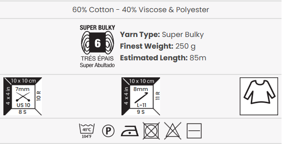 תכולה: 60% כותנה, 40% ויסקוזה ופוליאסטר